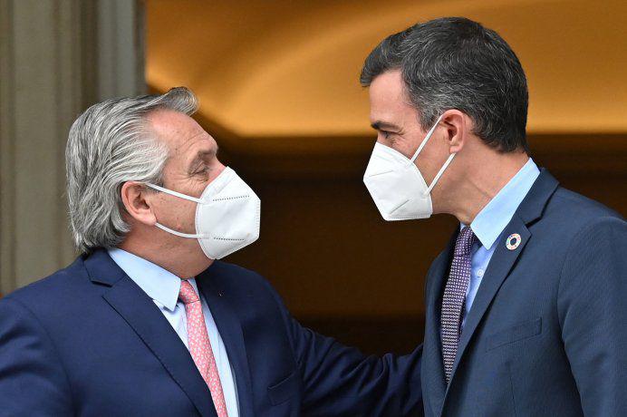 El presidente Alberto Fernández junto a su par español, Pedro Sánchez.